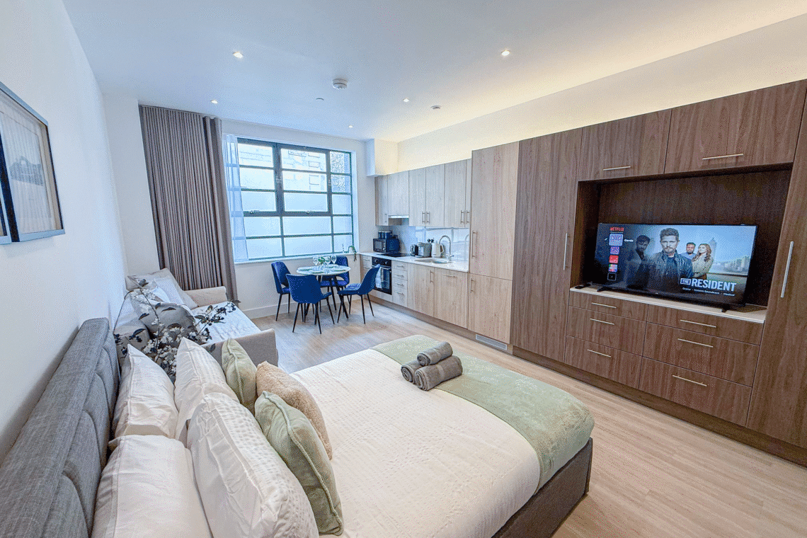 This charming studio flat blends comfort and convenience, featuring a cozy double bed in the bedroom and a sofa bed that converts into another double in the living room, ideal for couples, families, or small groups. The fully equipped kitchen lets you prepare meals, with a dining table for four to enjoy them. A top-notch bathroom with sleek fixtures offers a relaxing experience. Whether for a short or long stay, this stylish and practical space provides everything you need for a wonderful visit.