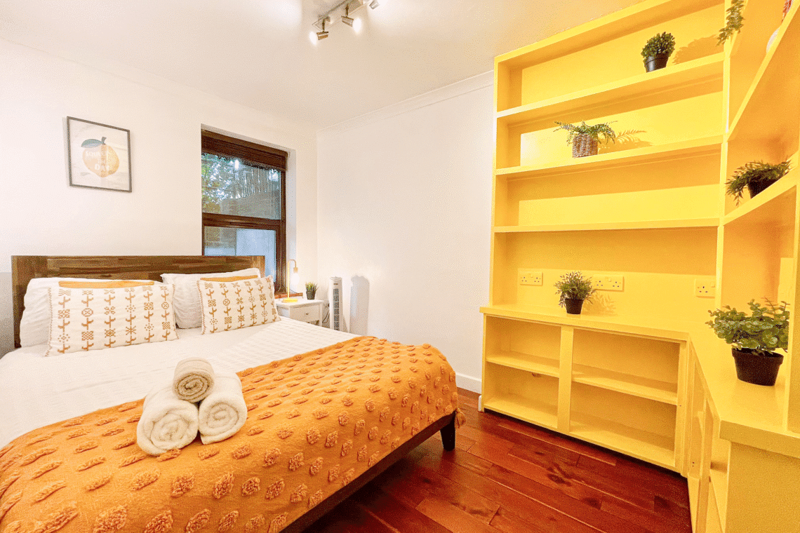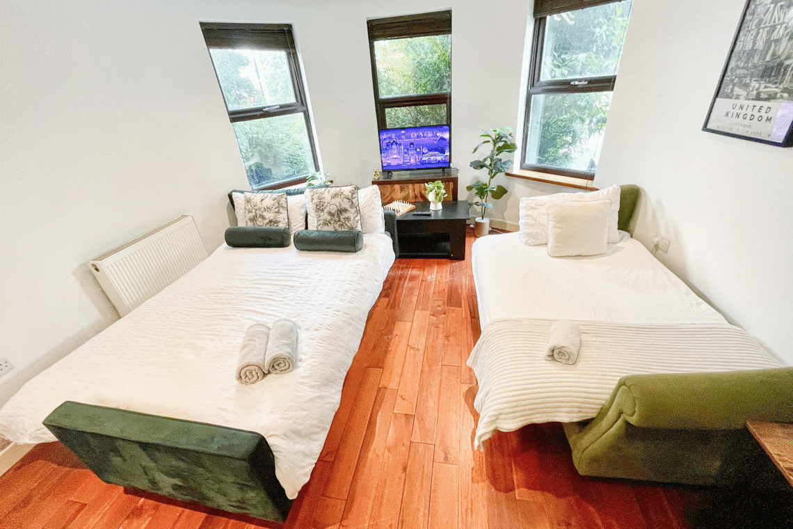 Discover the urban charm of Shoreditch in this industrial-style 1-bed flat featuring raw, modern interiors and exposed finishes. Located near Old Street Station, it offers easy access to hotspots like Hoxton Square’s buzzing nightlife, the Barbican Centre’s cultural events, and the historic Guildhall. Guests love the street art, vintage markets, and top dining spots like Dishoom and Boxpark. Ideal base to explore Brick Lane, Columbia Road Flower Market, and Spitalfields.