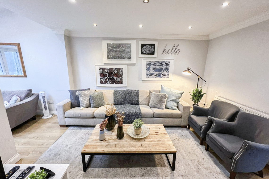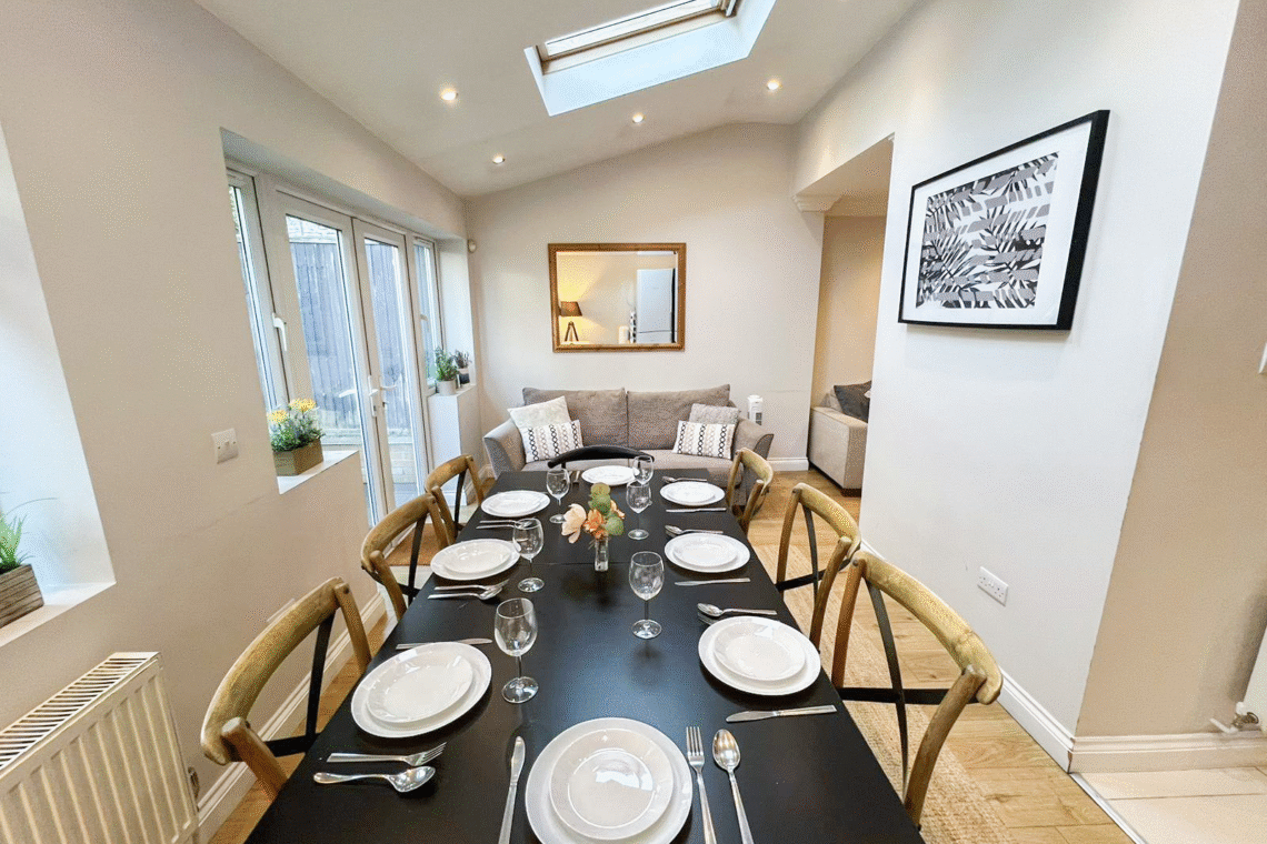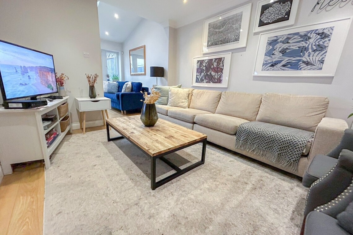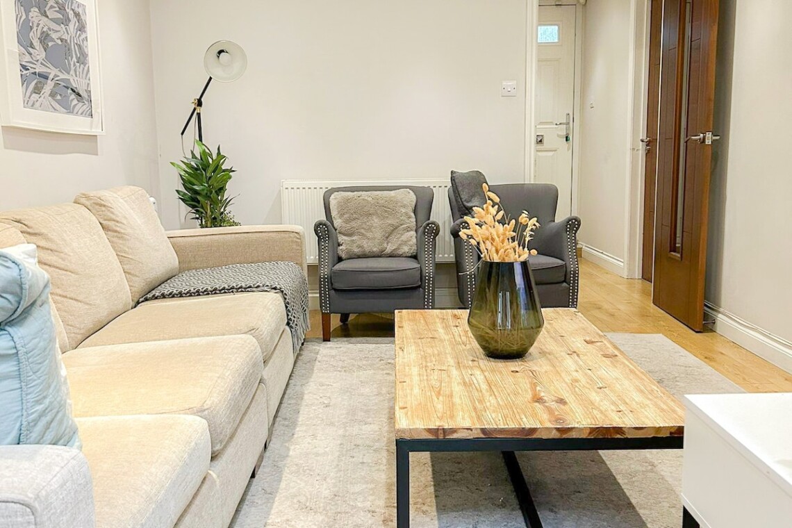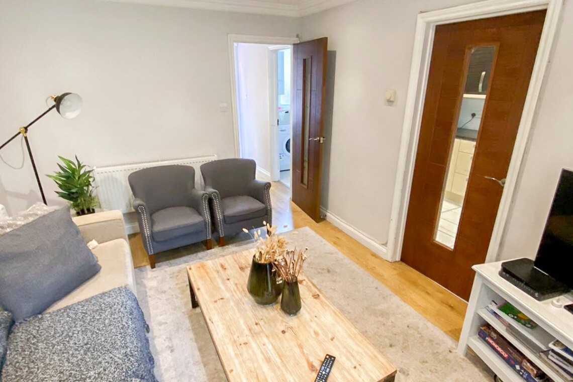 This spacious detached 4-bed flat spans from the ground floor to the second floor via internal stairs, making it ideal for larger families or groups seeking both comfort and privacy. Guests can enjoy exclusive access to a private garden with outdoor seating and benefit from FREE off-street parking for 2 cars.