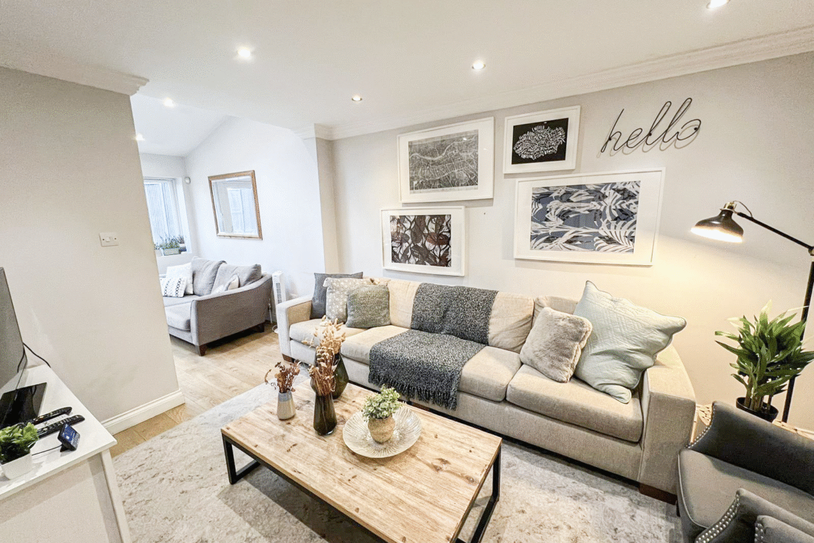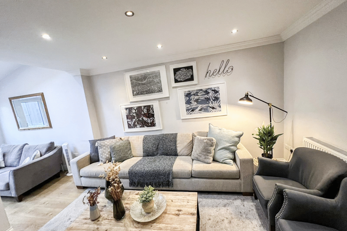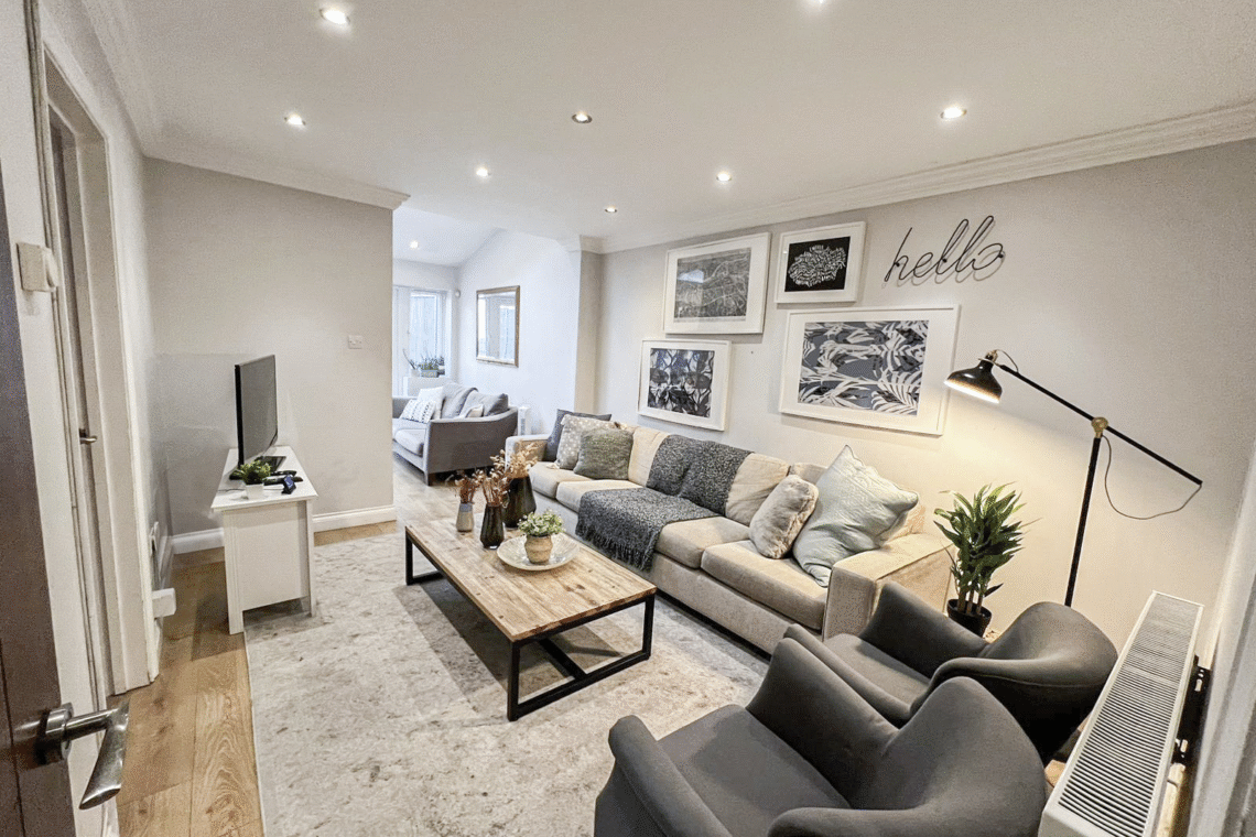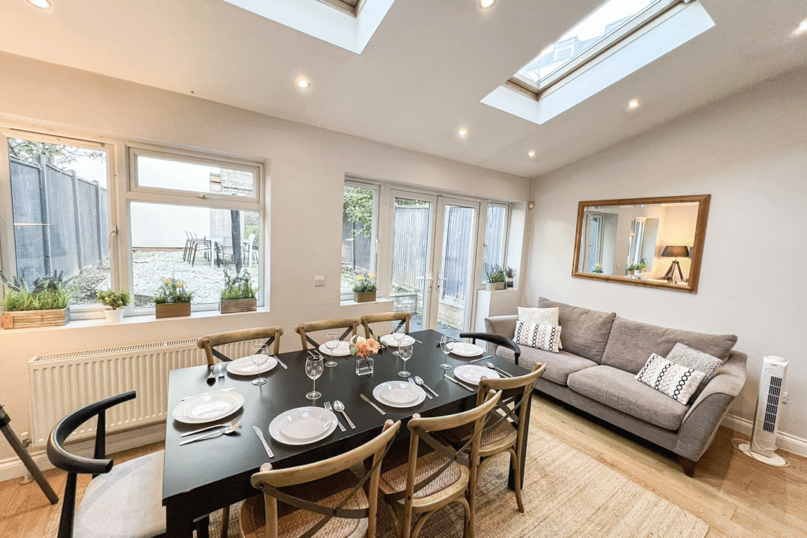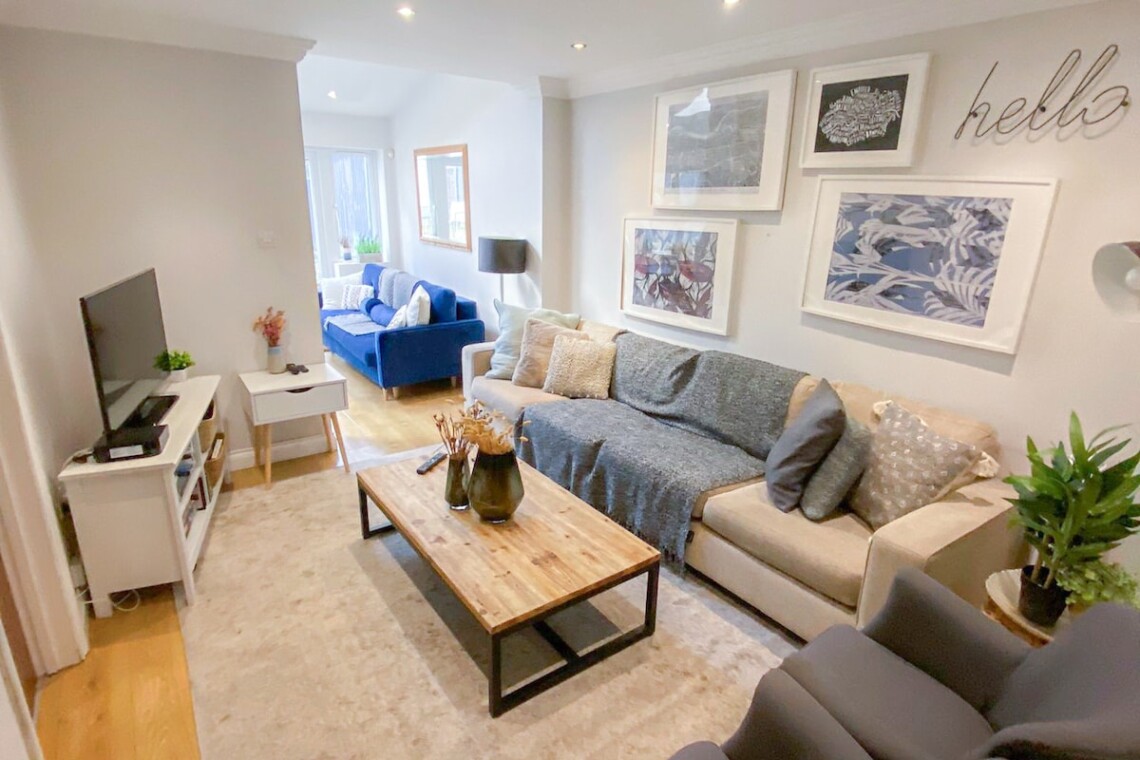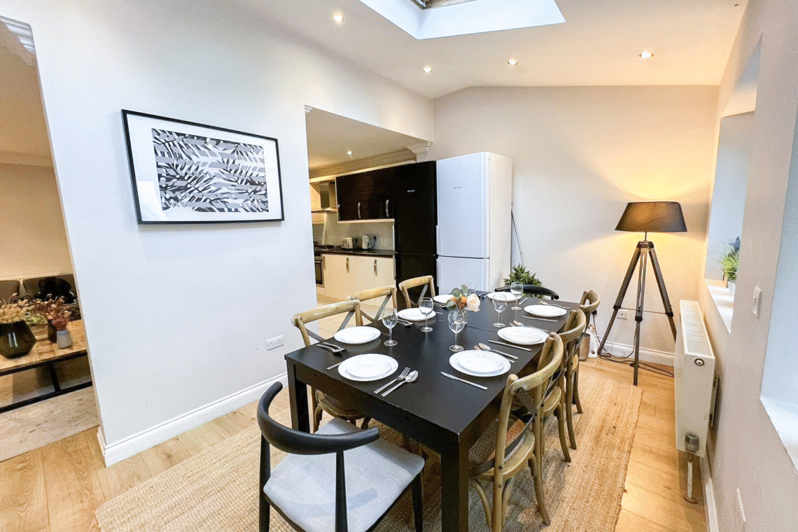 This spacious detached 4-bed flat spans from the ground floor to the second floor via internal stairs, making it ideal for larger families or groups seeking both comfort and privacy. Guests can enjoy exclusive access to a private garden with outdoor seating and benefit from FREE off-street parking for 2 cars.